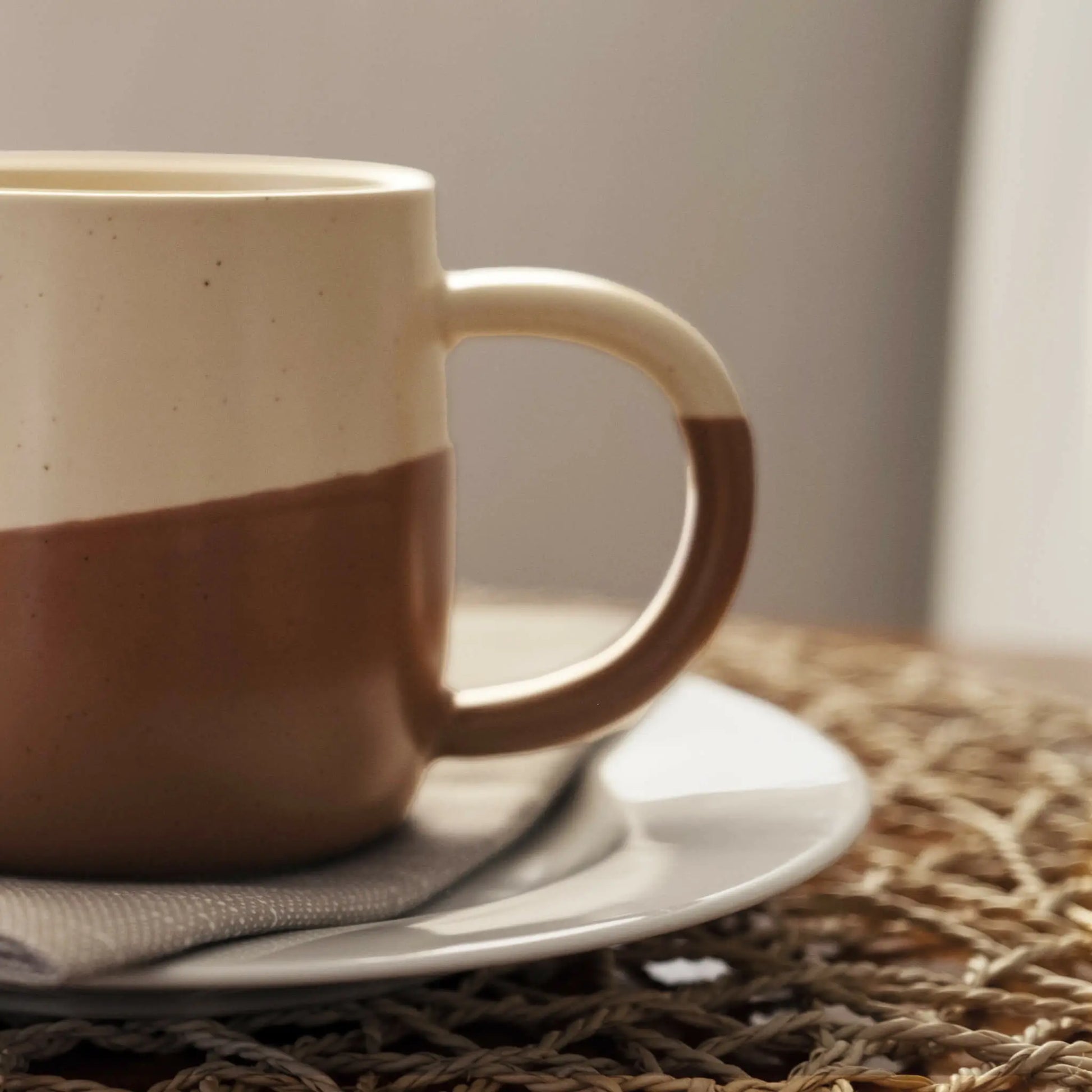 Das Modell ist erhältlich in verschieden Farben und ist im weissen Bereich leicht gepunktet. Mit dem leicht unebenen Übergängen bietet sie einen naturalen, handgemachten Look. Die Farben erinnern uns an die Umwelt: Wähle zwischen Gelb wie der Sonnenaufgang, Blau wie das Meer, Braun wie die Erde oder bleibe beim einfarbigen Weiss.